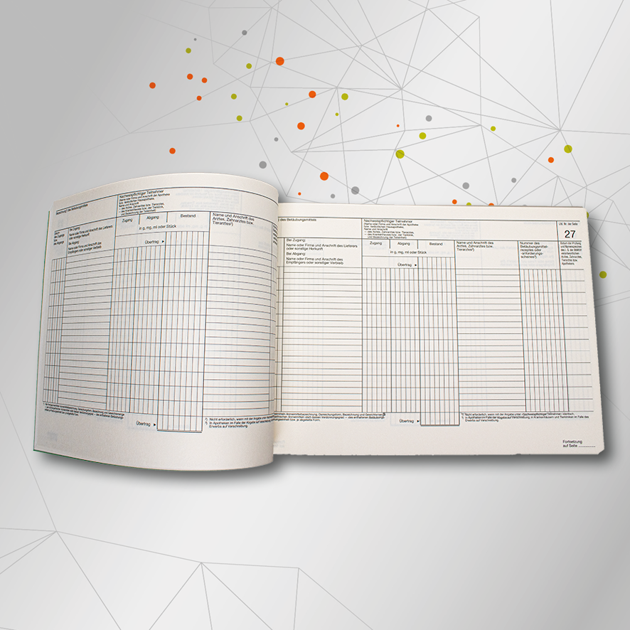 - zur ordnungsgemäßen Dokumentation der Abgänge und Zugänge nach § 13 BtMVV